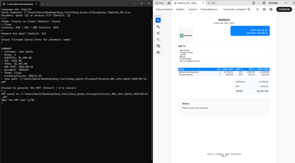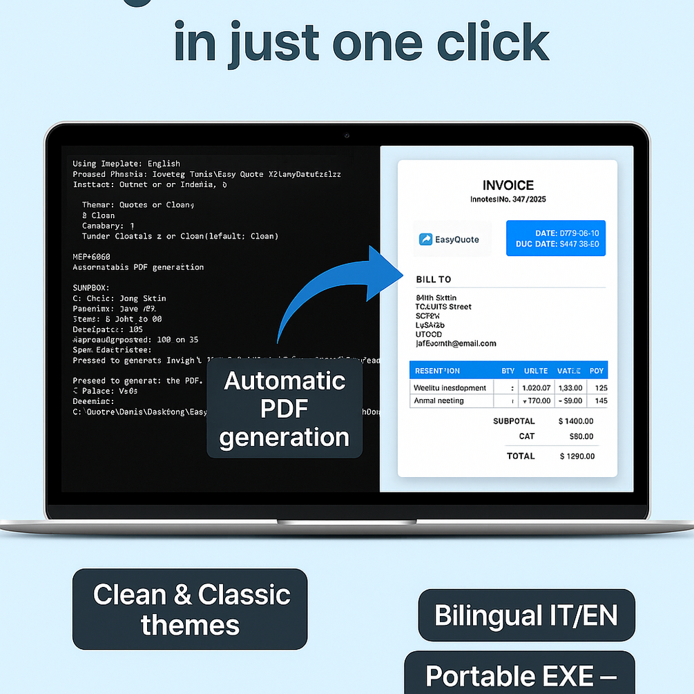EasyQuote v2 β Quote & Invoice Generator in PDF (Bilingual IT/EN, Portable EXE)